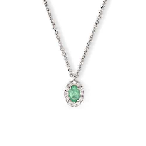 Collana in oro bianco, smeraldo taglio ovale e diamanti taglio brillante