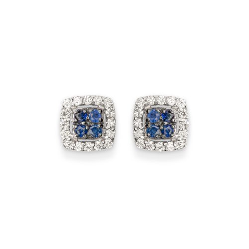 Orecchini in oro bianco forma quadrata, zaffiri e diamanti taglio brillanti