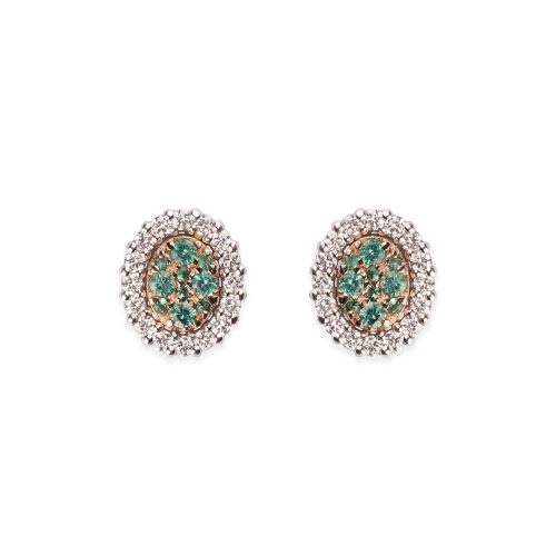 Orecchini in oro bianco e centro in oro rosè, smeraldi e diamanti taglio brillante