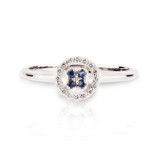 Orecchini in oro bianco forma quadrata, zaffiri e diamanti taglio brillanti