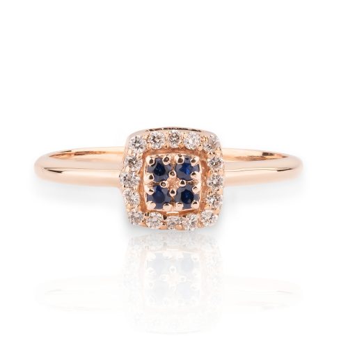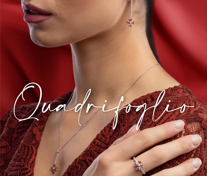 Collana in oro rosè forma quadrata con rubini e diamanti taglio brillante