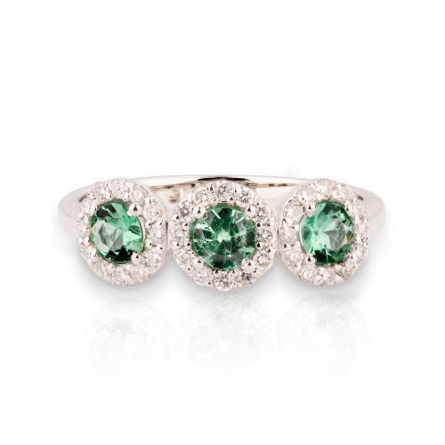 Collana in oro bianco, smeraldo taglio ovale e diamanti taglio brillante