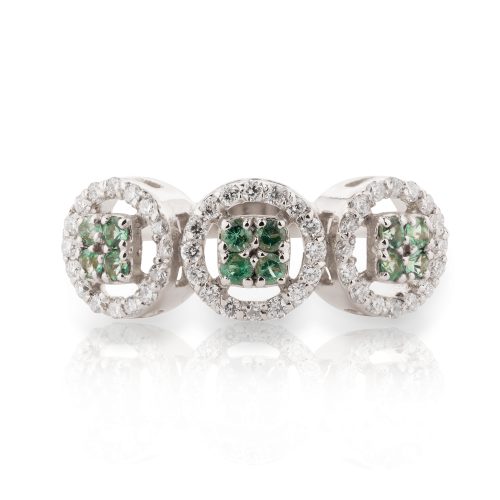 Anello trilogy in oro bianco con smeraldi e diamanti taglio brillante