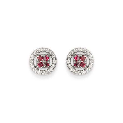 Orecchini in oro bianco forma circolare con rubini e diamanti taglio brillante