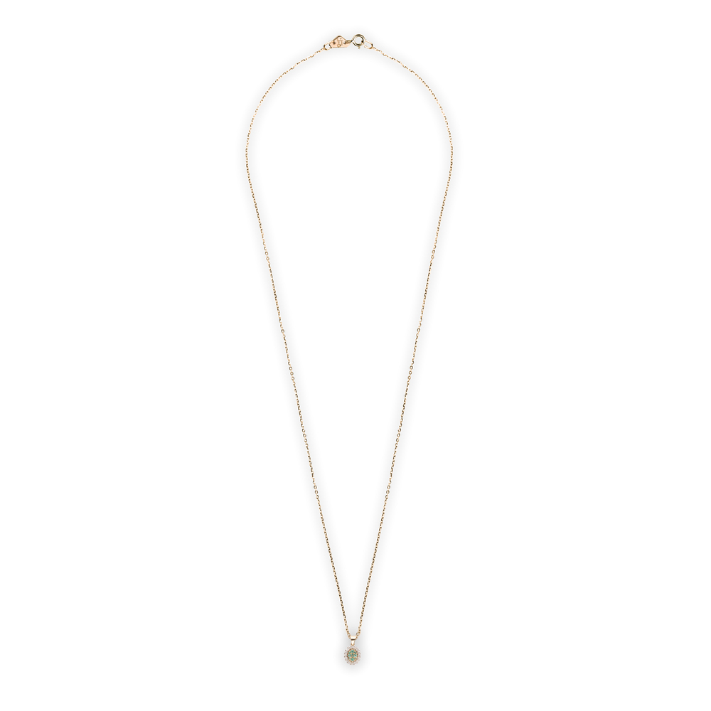 Collezione Rio, collana in oro bianco e centro in oro rosè, smeraldi e diamanti taglio brillante