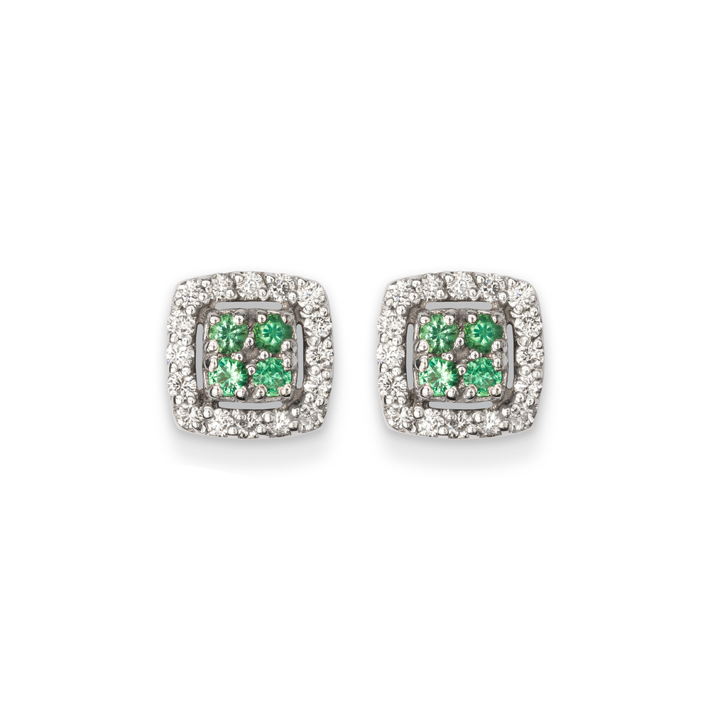 Collezione Chic, orecchini in oro bianco forma quadrata, smeraldi e diamanti taglio brillante