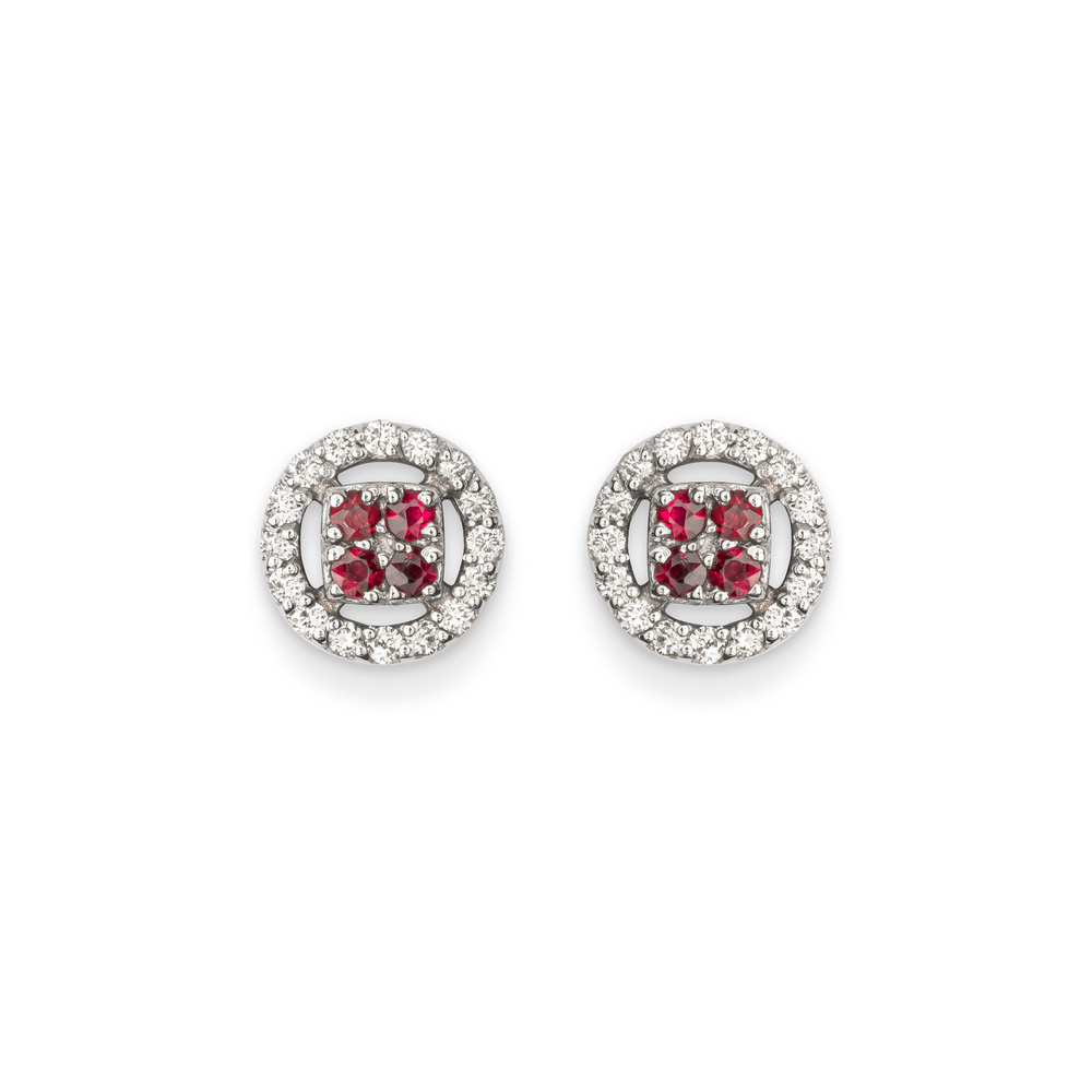 Collezione Chic, orecchini in oro bianco forma circolare, rubini e diamanti taglio brillante