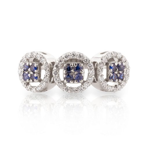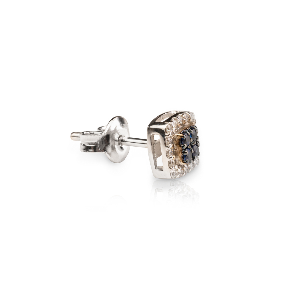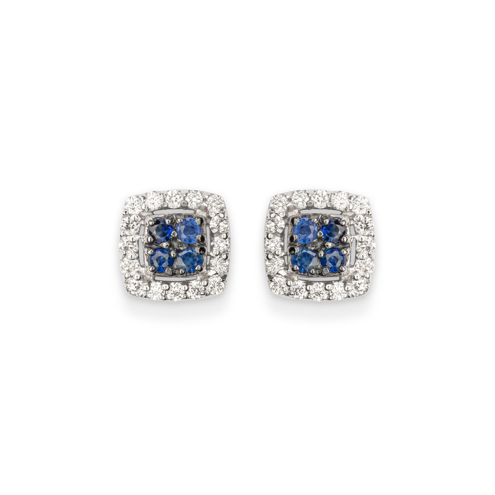 Collezione Chic, orecchini in oro bianco forma quadrata, zaffiri e diamanti taglio brillanti